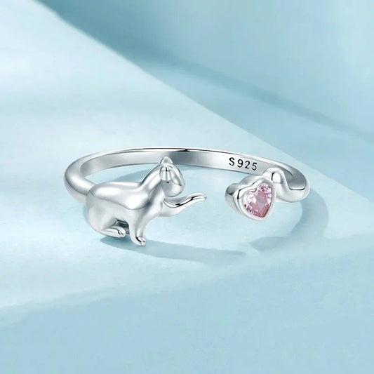 Jolie bague ouverte en forme de chien de compagnie